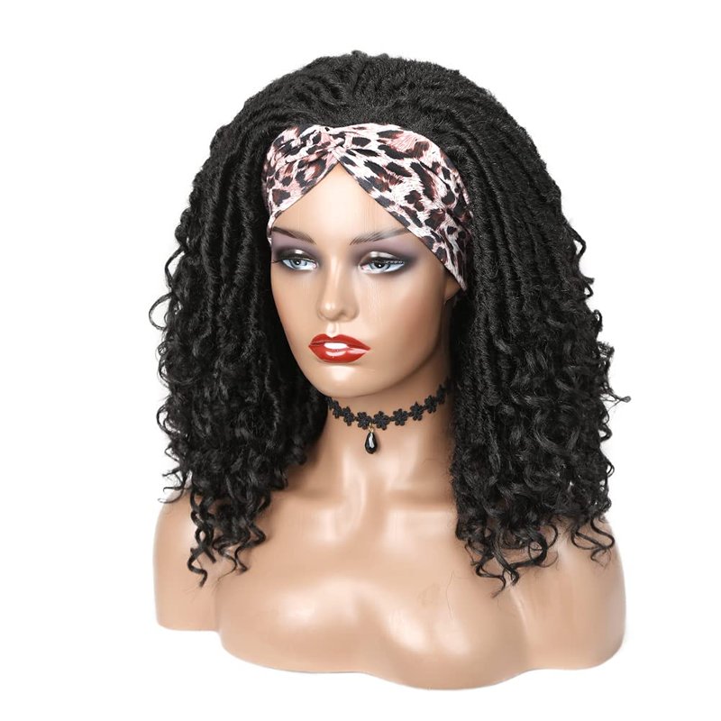 Hanne Fashion Headband Wigs Short Dreadlock Wig Goddess Hand Braided Twist Synthetic Wigs for Black Women Daily Cosplay Braided Curly Wigs 1B