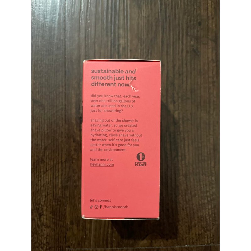 - SUSTAINABLE STEPS: At hanni, we think about sustainability in our everyday decisions. It’s not easy to be fully sustainable, and “the right thing” to do isn’t always immediately apparent. but we embrace the challenge by taking small, practical steps and learning more. Our Shave Pillow shave balm is made with 100% Post Consumer Recycled material with no virgin plastic used because we believe packaging should do its job without creating excess waste.