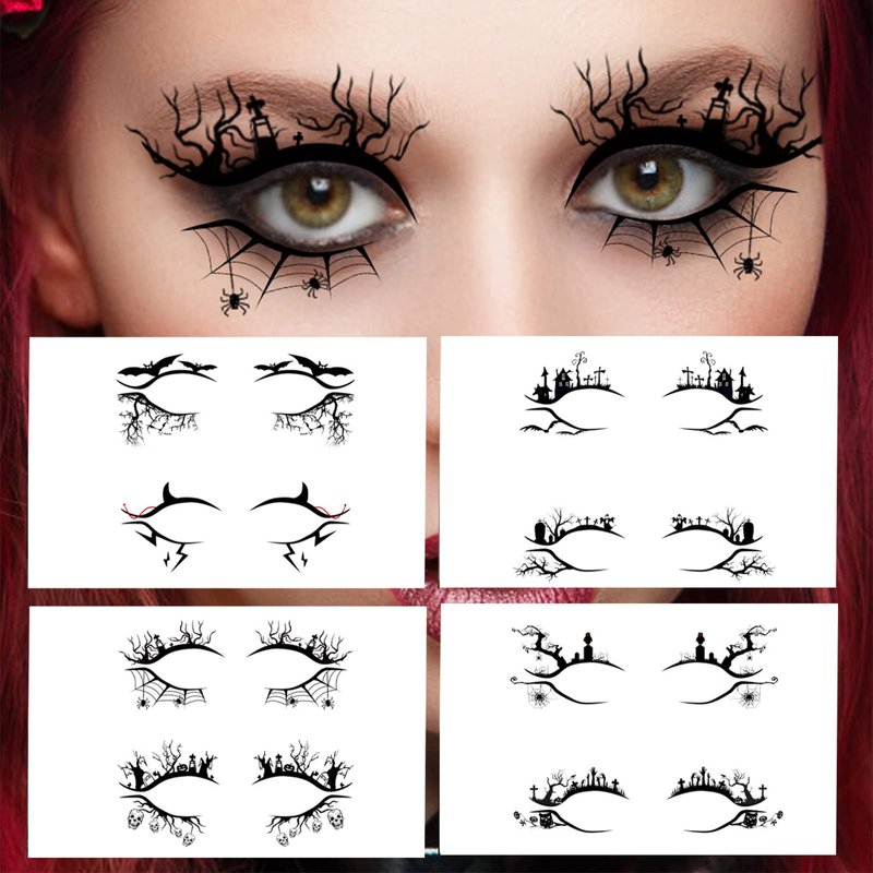 - Halloween Design: These eye shadow stickers are designed into many different shapes about Halloween, such as bats, spider webs, skull, the tree of death and more.