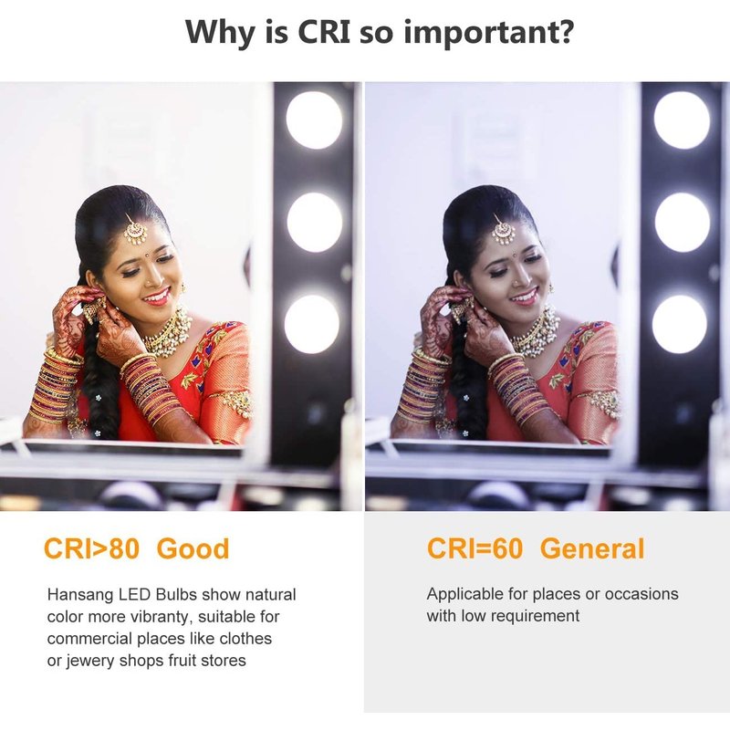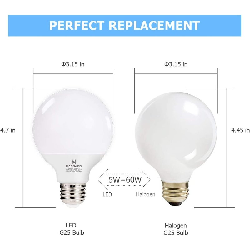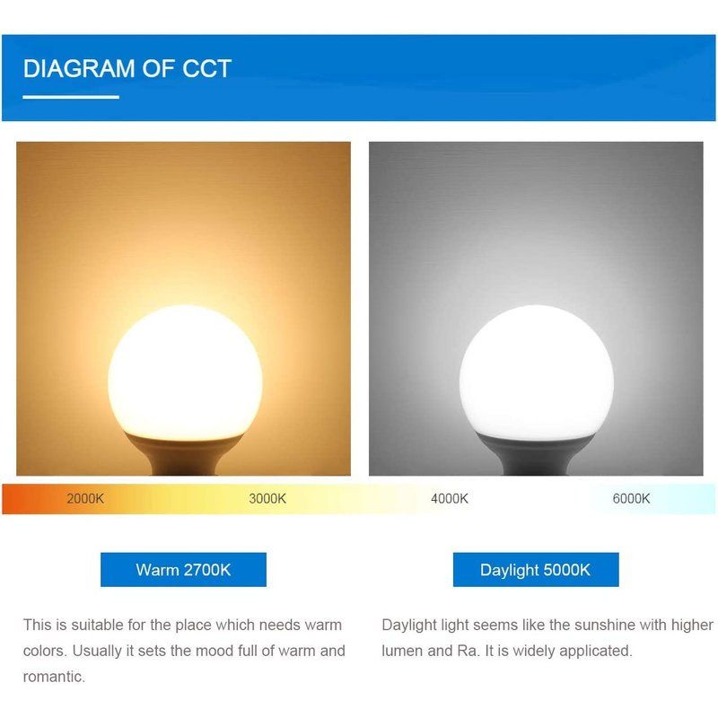 - G25 LED Bulb With Even Lighting: The more uniform the light, the much easier for you to makeup quickly. The high light transmission lampshade and 80+ CRI of the G25 LED globe light bulbs allow the object looks closer to realistic. Visible flicker may result in eye-fatigue. However, the stable current of these mirror light bulbs provides you with a better lighting experience without flicker to protect your eyes.