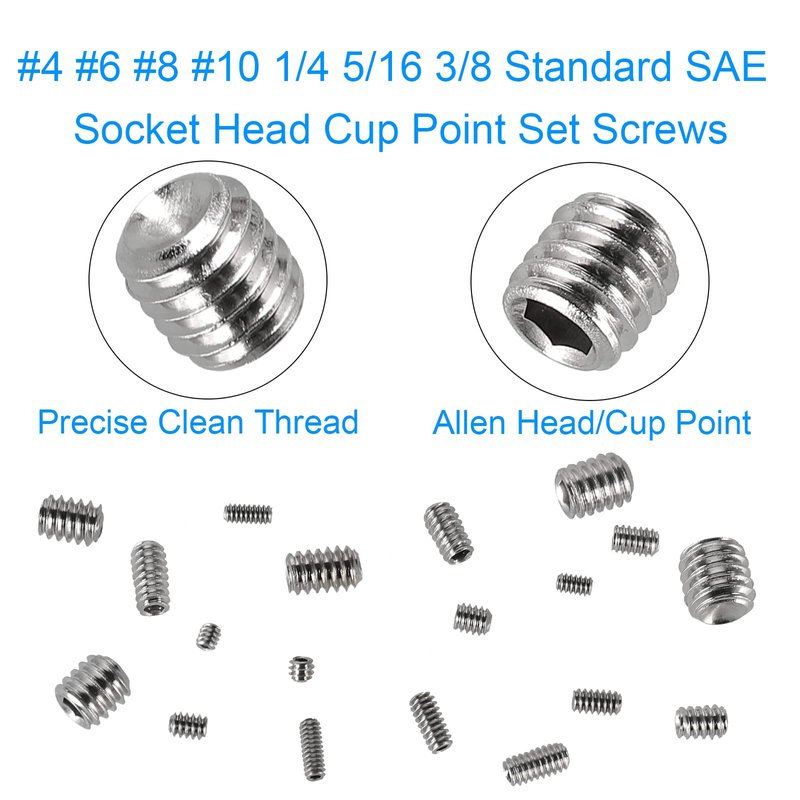 - Color: Silver:UNC #4-40 to 3/8"-16 SAE Set Screws