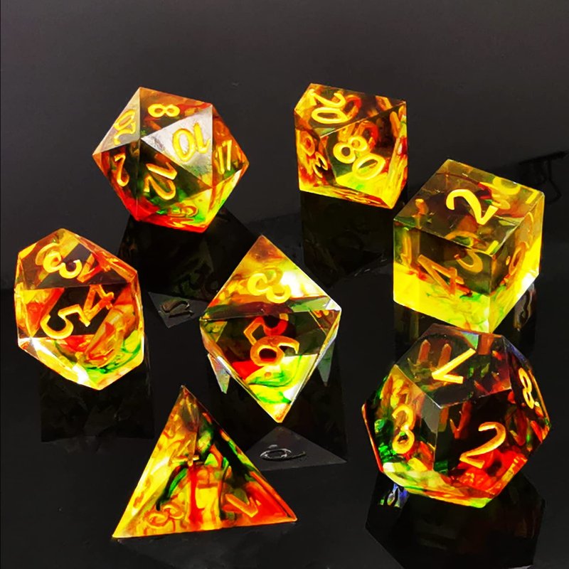 HAOMEJA DND Resin Dice Set Handcrafted Designer 7-Die Polyhedral RPG Dice Set with Sharp Edges for DND Dungeons and Dragons Role Playing Games (Colorful)