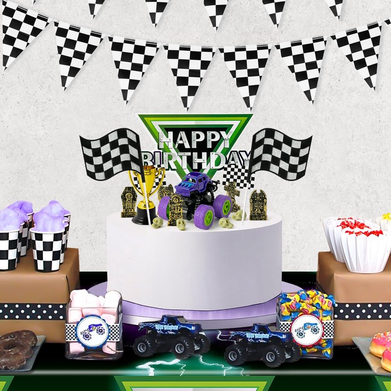 - Value Pack for Ultimate Decorations: This comprehensive package includes 1 monster truck toy car, 2 extra wheels, 4 skulls, 1 trophy, 1 “happy birthday” topper, 24 checkered flags with bamboo sticks, 2 checkered flags with plastic sticks, and 5 different tombstone designs (1 of each). Perfect for creating an exciting cake or cupcake display, offering endless possibilities to mix and match for a stunning look on your child’s special day.