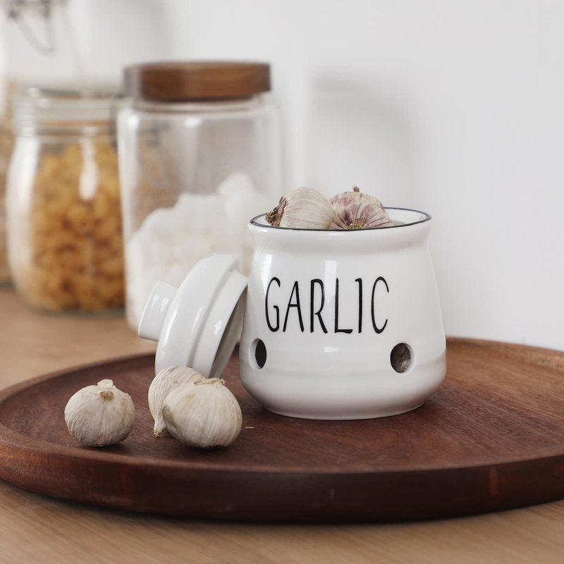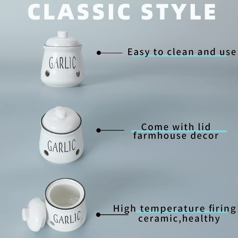 - 【HIGH-QUALITY CERAMICS】-The garlic container is made of ceramics and is very easy to clean. You can choose to wash it by hand or in a dishwasher, which is safe. Unlike stainless steel and other materials, ceramics are fragile, but if well protected, they can be elegant in your kitchen for many years.