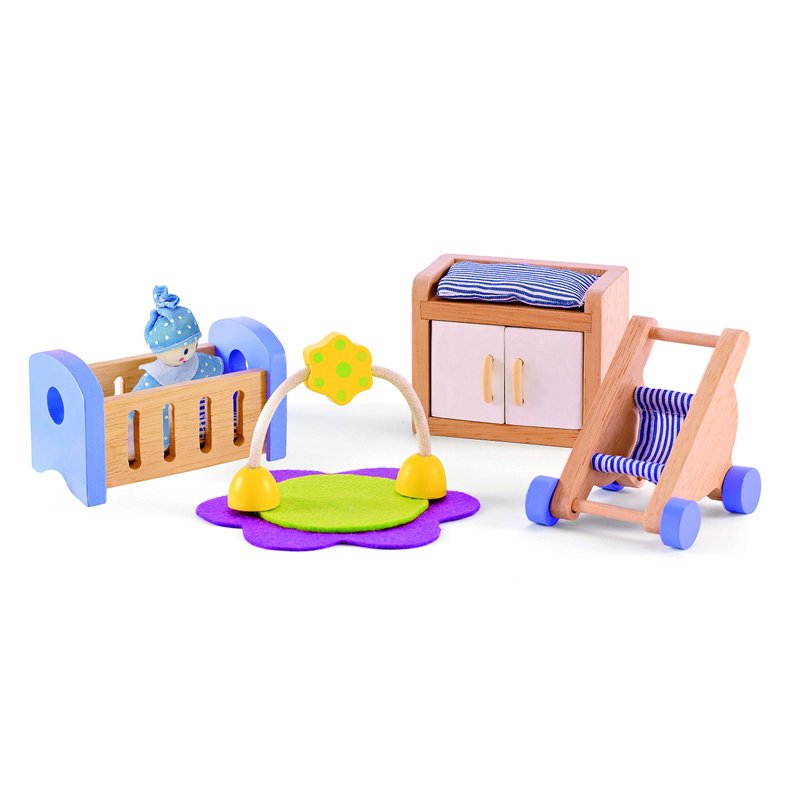 - PERFECT ADDITION TO THE DOLLHOUSE: Complete the Hape Happy Family series with this lovable wooden baby's room set and fits perfectly into your All Season Dollhouse or any 1'' scale doll house.