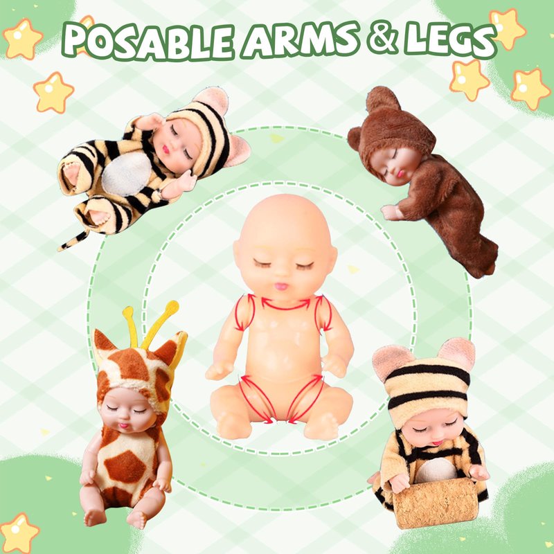 - SIMPLE BUT FUN TO PLAY: 4 inches tiny babies doll size is more suitable for 3 4 5 6 year-old children's small hands to grasp, flexible and movable limbs can be posed in a variety of poses, clothes and hats can be disassembled separately, but also can be combined with different styles of mix and match, soft rubber material head easy to change, hard body material makes the joints more durable.