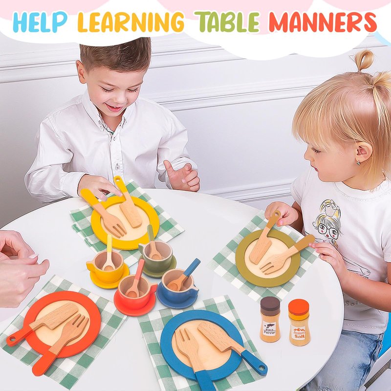 - EDUCATIONAL AND FUN: Our tableware set toys for your kids are carefully crafted to provide all the accessories to enjoy the food, so that your kids can also experience the joy of preparing the whole dinner. Fully develop your child's imagination, hands-on ability and creativity in the process of preparing dinner. The play process allows your child to learn table manners and also develops their social interaction and language skills.