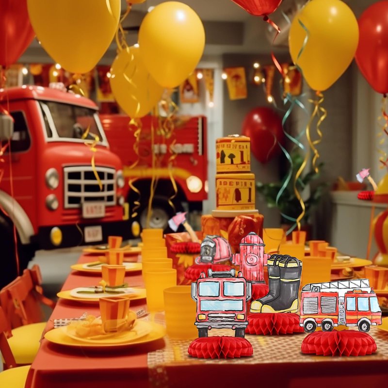 - QUICK AND EASY SETUP: Setting up our Firetruck Centerpieces is a breeze, taking just minutes, then place it in your preferred display area. Decorating your party has never been this effortless, saving you valuable time.