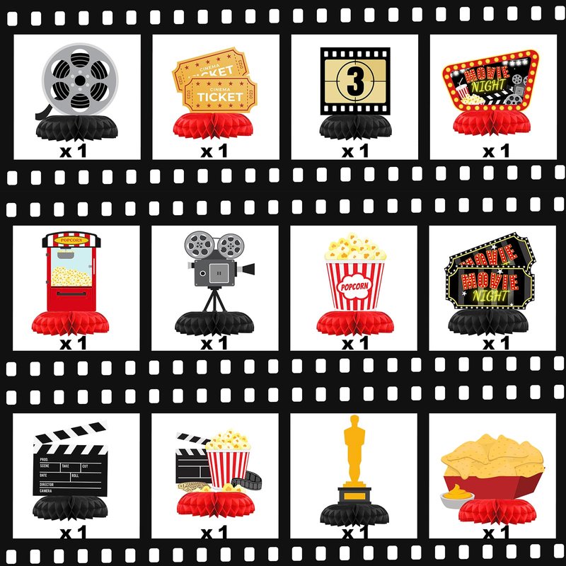 - AMPLE QUANTITY AND PERFECT SIZES: You'll receive a set of 12 Movie Night Table Centerpieces. These adorable Honeycomb Centerpieces can be effortlessly mixed and matched with other movie-themed decorations, ensuring your party is an absolute hit.