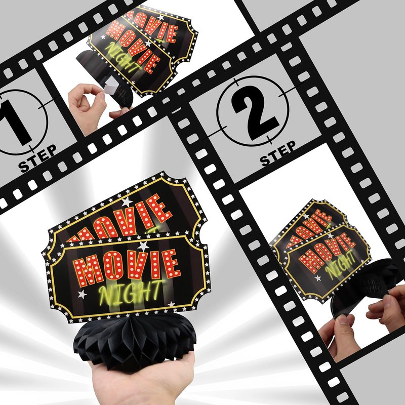 - QUICK AND EASY SETUP: Setting up our Movie Night Centerpieces is a breeze, taking just minutes, then place it in your preferred display area. Decorating your party has never been this effortless, saving you valuable time.