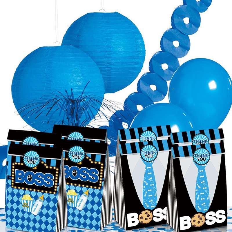 - Boss theme party gift Bags are great for little boy 1st 2nd 3rd birthday and blue black theme baby shower party celebration.
