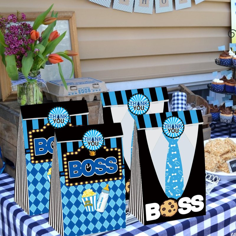 - You will get novelty boy boss theme party favor bags 24 pcs with 30 pcs boss theme thank you stickers.