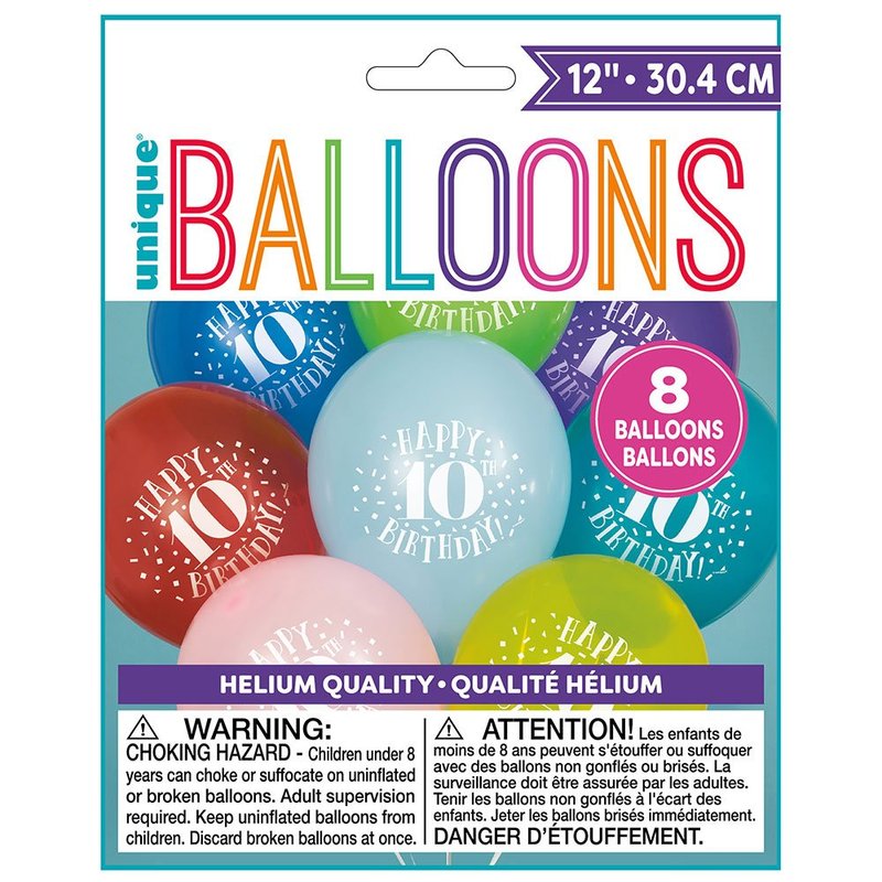 - PACKAGE INCLUDES: 8 10th birthday party latex balloons - 12" when fully inflated