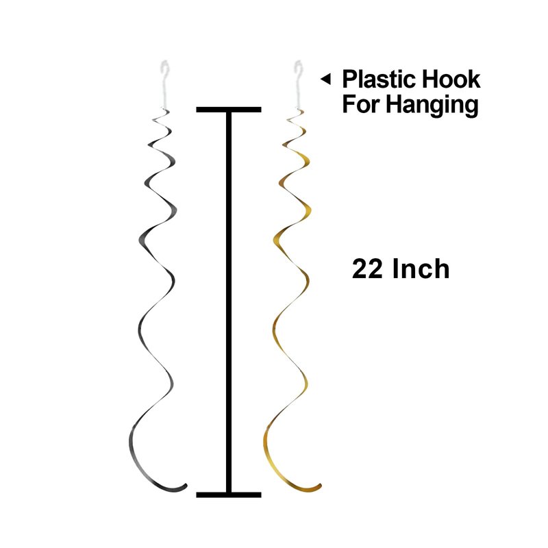 - Size: Each swirl can extend to approx. 29in to 38inch in length. Each cutout measures approx. 7inch x 7inch. Great for birthday party, works well with our other black and gold party decorations to give you a gorgeous black and gold world.