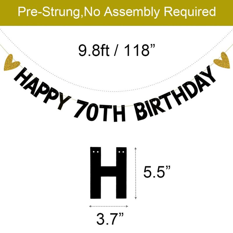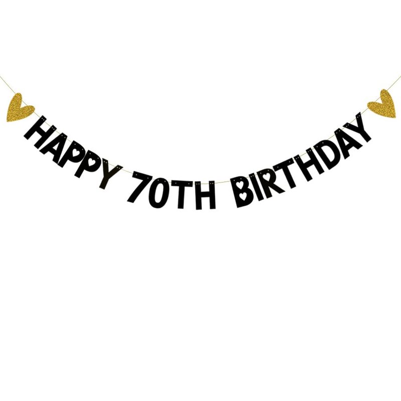 Black glitter paper " HAPPY 70TH BIRTHDAY " banner.