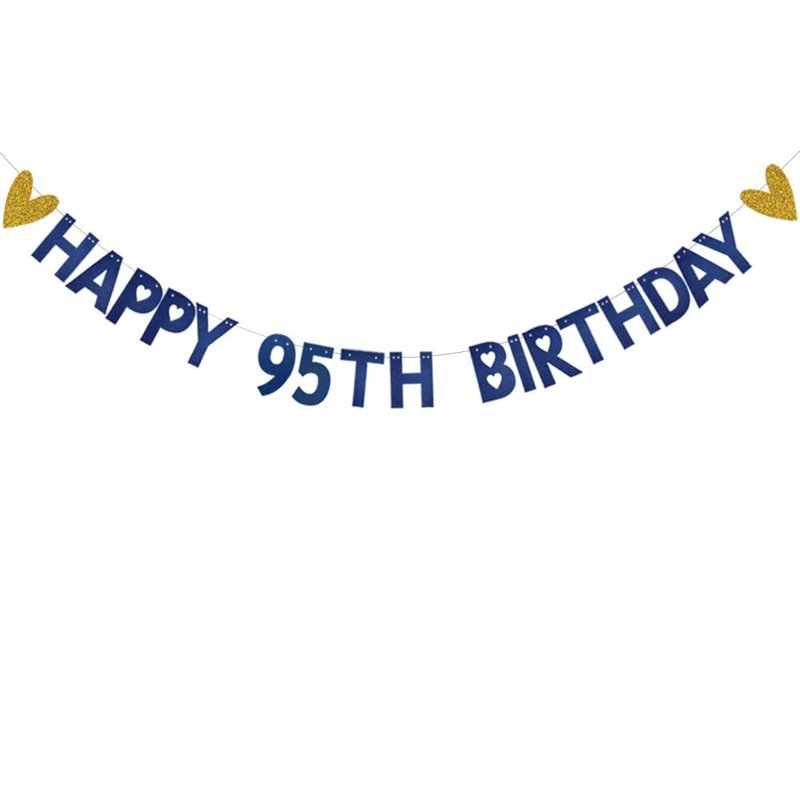 Blue glitter paper " HAPPY 95TH BIRTHDAY " banner.