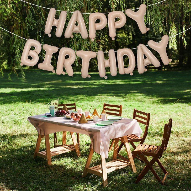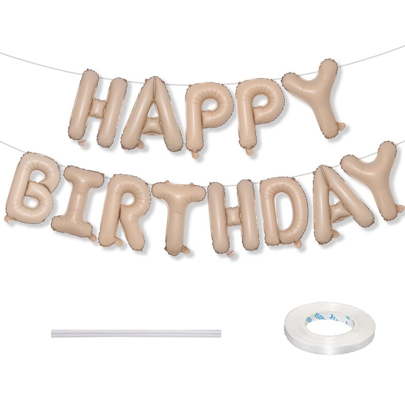 - 💖 Wide Applications: Beige ''HAPPY BIRTHDAY'' foil letter balloon banner is perfect for girls women birthday party, and hang the lovely birthday balloon bunting banner in the kitchen, living room, or other outdoor places, as a backdrop or photo props. You can try combining with other colorful balloons decorations to create different themed birthday parties.