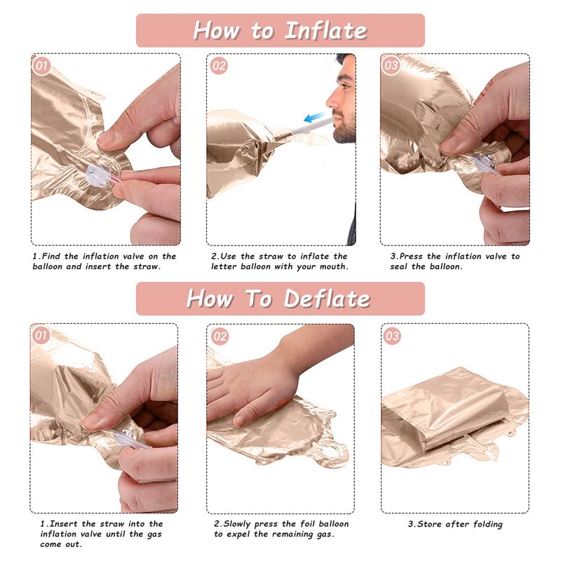 - 💖 Easy to Inflating & Deflating: Simply insert the straw or use the handheld pump into the plastic valve at the bottom of the letter and slowly blow to inflate. When the letter balloon is sufficiently inflated, pull out the straw and pinch tight the self sealing plastic valve. Only take a couple of minutes to complete.