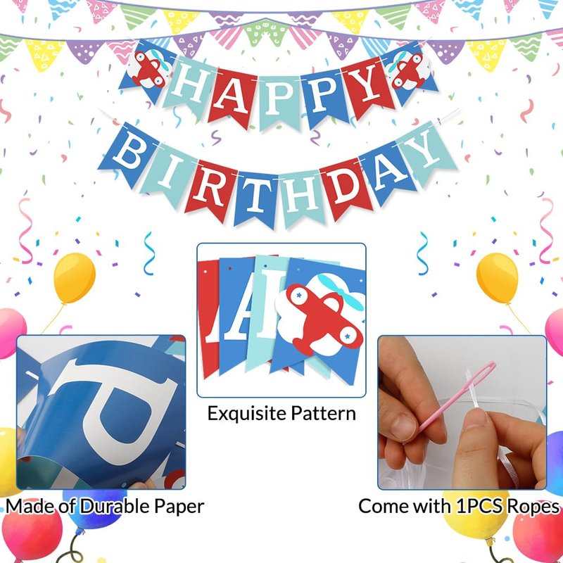 - Birthday Party Decorations: You will get 1pc Happy birthday banner includes 13pcs paper single letters that spell the phrase "HAPPY BIRTHDAY", this birthday banner is Perfect for Airplane Theme Birthday Decoration Set for boys, girls, Make the party to become an unforgettable moment!