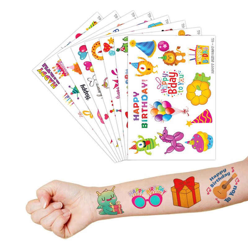 - 🎉[PERFECT PRESENTS FOR BIRTHDAY PARTIES]: Add a touch of celebration to your parties with these Happy Birthday tattoos. Decorate using these tattoos and receive numerous compliments for your themed event setup. These birthday tattoos serve as delightful tokens that you shouldn't overlook for your special occasion.