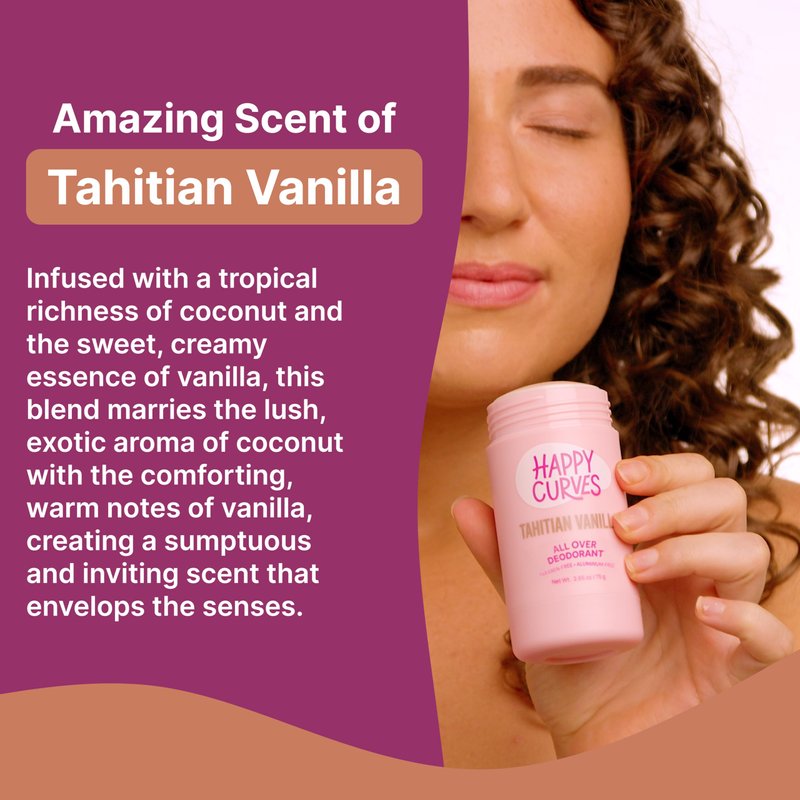 HAPPY CURVES All Over Whole Body Deodorant for Women - Aluminum-Free - Invisibile All Day Layer of Full Body Protection for Odor Control Only, Sensitive Skin, & Private Parts (Tahitian Vanilla)