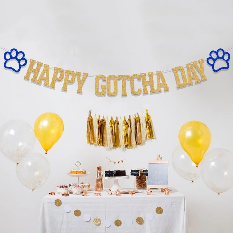 - Party decoration: You will get a 'Happy Gotcha Day' Banner on which you can use your imagination and unleash your creativity to DIY your party.