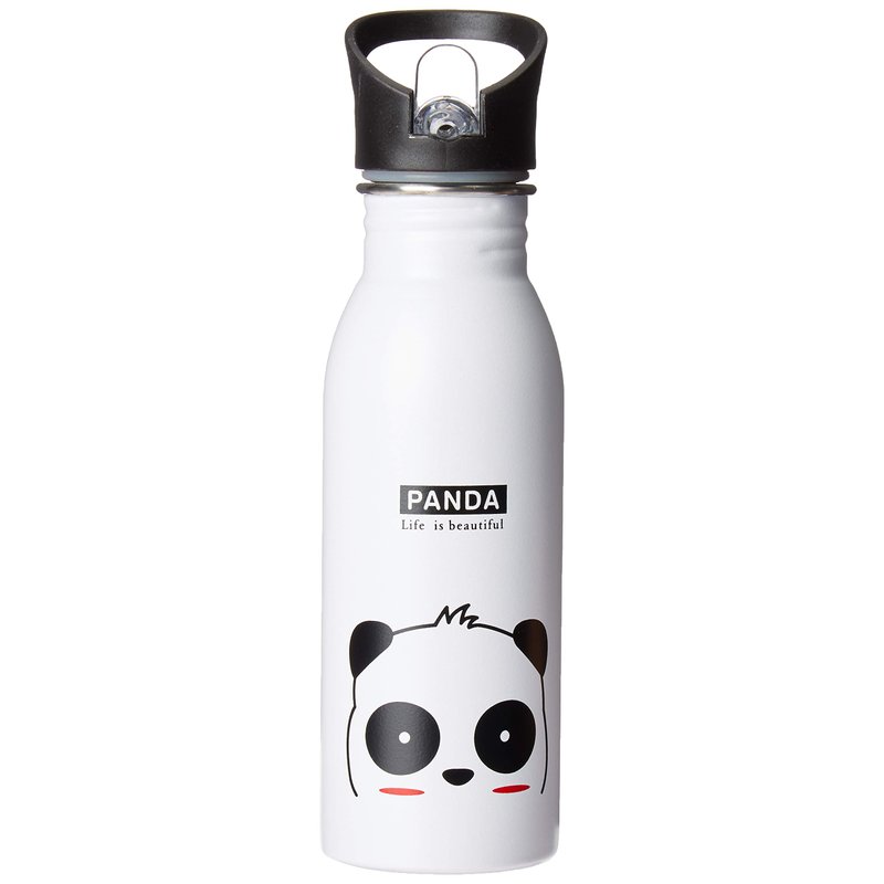 Stainless steel 20oz water bottle with convenient flip sport top with straw, carry loop and unique Panda design that states "life is beautiful," Great for family travel, cycling, camping or everyday use. Corrosion resistant, durable and fun makes this bottle perfect for kids and adults. Straw and top are dishwasher safe.