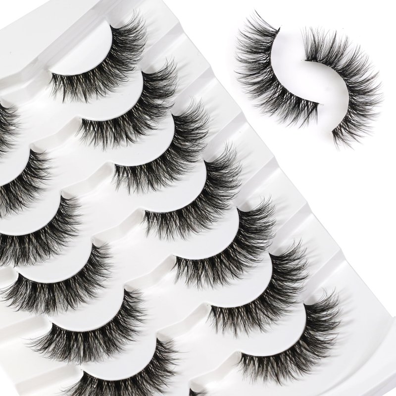 Happy Heartbeat False EyeLashes Natural Look Transparent Band Wispy Cat Eye Short Fake lashes Supernatural Cross Soft Reusable Lashes 7 Pairs
