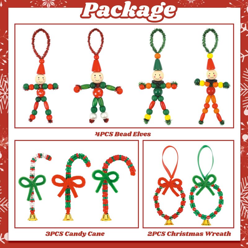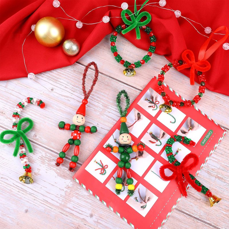 Christmas Crafts Create Your Own Bead Elves DIY Beads Ornaments Kits Christmas Tree Decoration Include Candy Cane, Wreath, Elf, Xmas Holiday Gifts Stocking Stuffers Decor Party Decorations Supplies