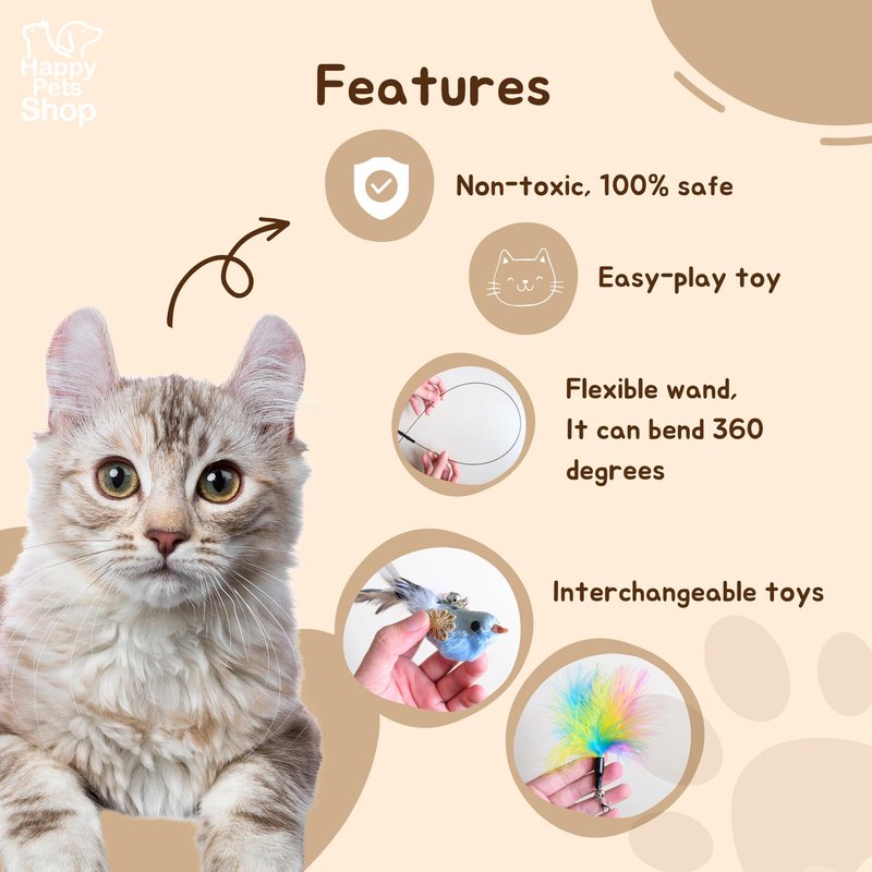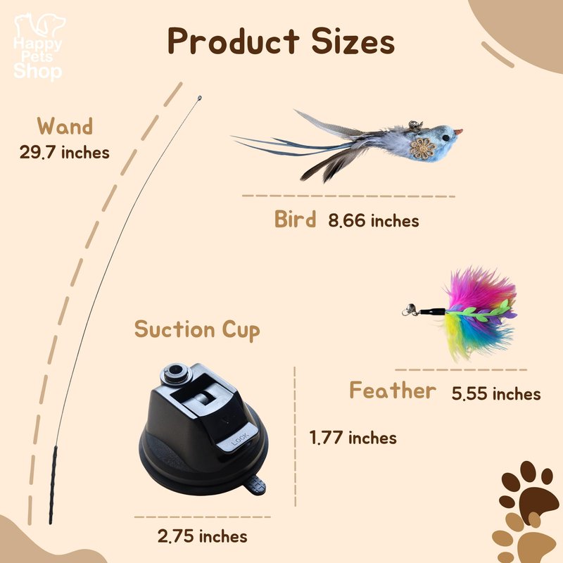 Happy Pets Shop Cat Toy Feather Wand Suction Cup - Interactive cat Toy - Automatic cat Toy - Interactive cat Toys for Indoor Cats - Cat Feather Toy Automatic - Interactive Bird Simulation Cat Toy