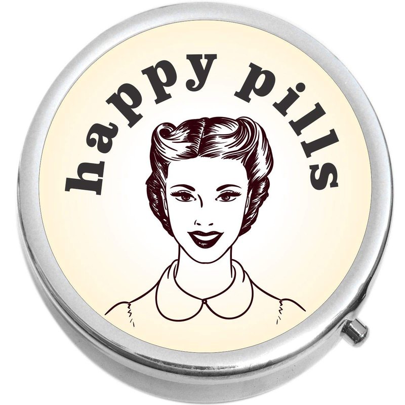 Happy Pills Medicine Vitamin Compact Pill Box - Portable Pillbox case fits in Purse or Pocket