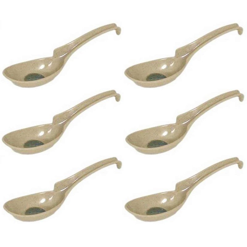 - 6 pieces Asian/Chinese melamine soup spoons with Notch & Hook to prevent slipping in the bowl.