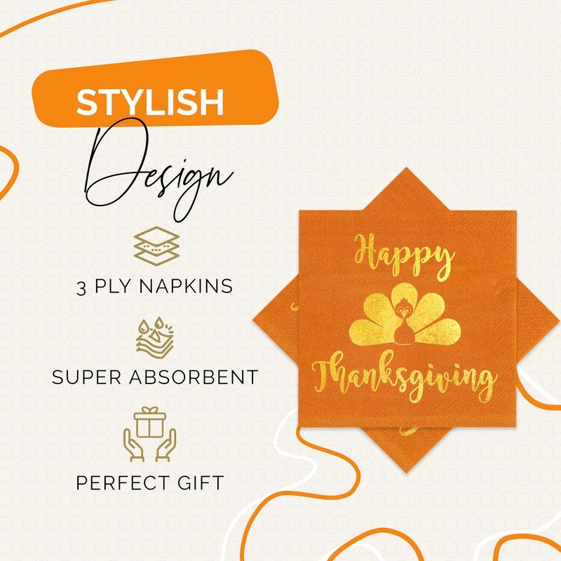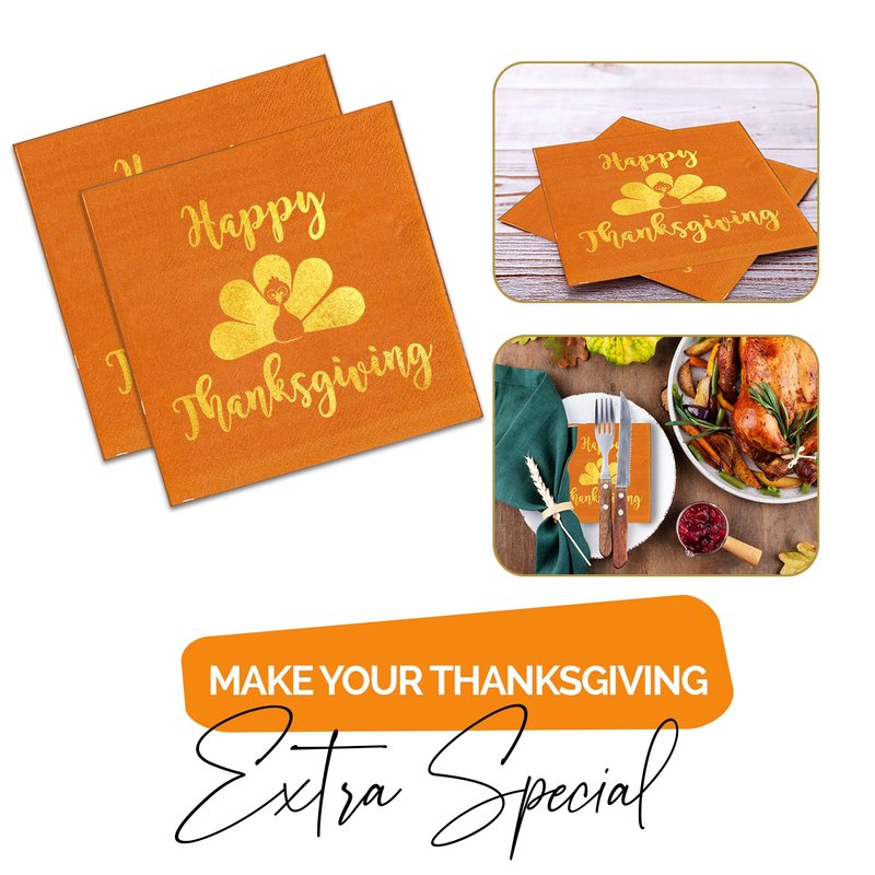 - STYLISH DESIGN - Our package contains 50 Burnt Orange and Gold Foil Happy Thanksgiving Napkins! Perfect Thanksgiving paper napkins to post on social media!