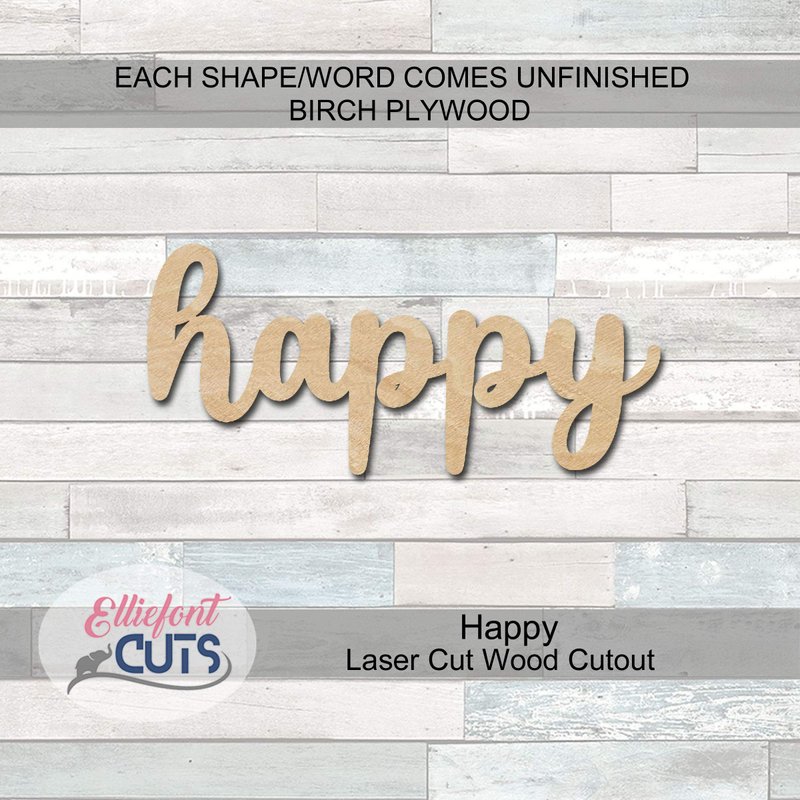 Happy Wood Cutouts for crafts, Laser Cut Wood Shapes 5mm thick Baltic Birch Wood, Multiple Sizes Available