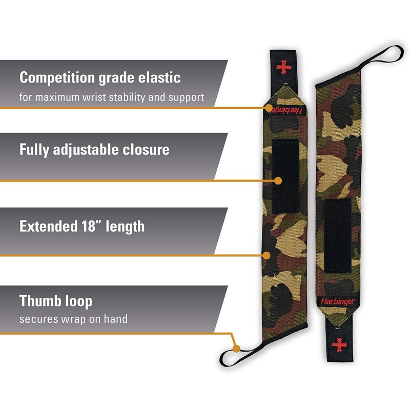 - Extended 18-inch length offers strong support to the wrists, and thumb loop secures the wrist wrap to the hand