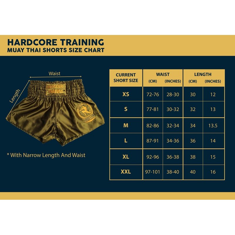 - Hardcore Training sport wear brand always use high quality materials. The shorts are made from prime quality Satin material which gives a soft and light feel. Light fabric is perfect for Boxing, Kickboxing, Martial Arts activities, you will feel free in your fight moves. Hardcore Training Classic Muay Thai shorts are breathable and comfortable to wear. Suitable for fightings.