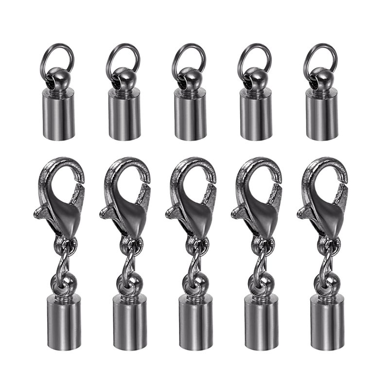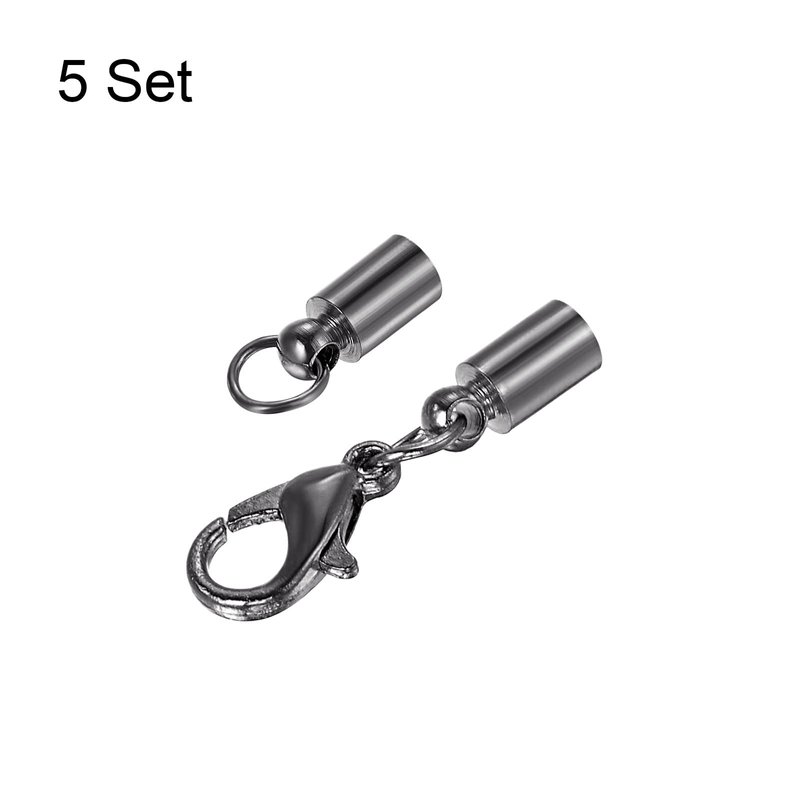 HARFINGTON 5pcs Cord End Cap 3.5mm ID Lobster Claw Clasp End Caps for DIY Bracelets Necklaces, Black