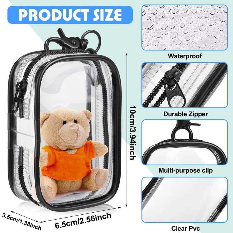 Features: With classic and simple design aesthetics, our small storage bag delivers functional storage with a touch of timeless elegance. This ensures the bag fits effortlessly into your decor or collection display, making your collectibles stand out. All our display cases for figures come with a keychain, making them suitable for on the go display or storage. Turn your collectibles into a trendy stylish accessory by hanging them on backpacks or handbags, presenting them where you go. Specifications: Material: PVC Color: as pictures show Size: about 3.94 x 2.56 x 1.38 inches/ 10 x 6.5 x 3.5 cm Package includes: 6 x Clear figure display bags with keychain Notes: Manual measurement, please allow slight errors on size. The color may exist a slight difference due to different screen displays. Please understand that dolls in the picture are not included. Small items are included, please keep them away from little kids in case of choking risk.