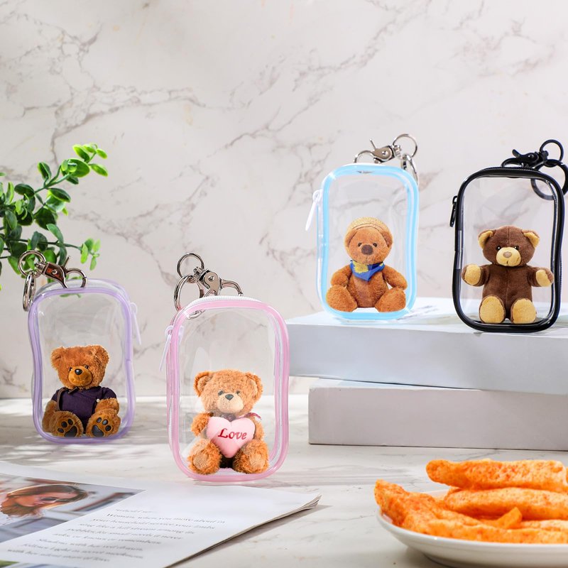 - Enough Quantity and Different Sizes: you will receive 6 pieces clear figure display bags with keychain, containing 6 different colors, black, white, blue, pink, purple and clear, these transparent designs allow you to see what's in the bag and quickly find the items you need
