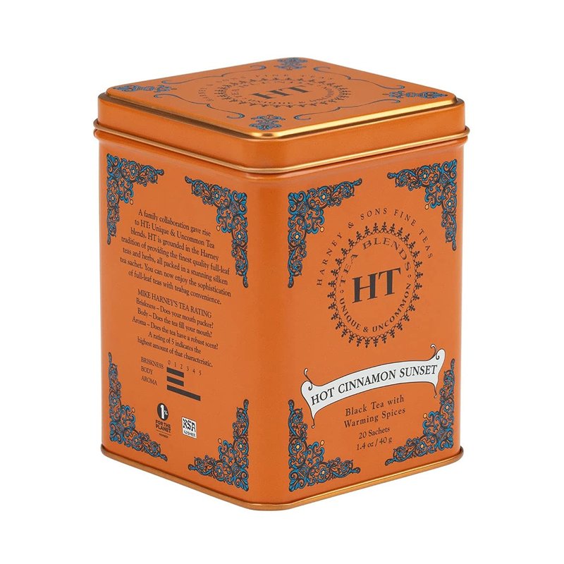 Harney & Sons Caffeinated Hot Cinnamon Sunset Black Tea with Orange and Cloves Tin 20 Sachets