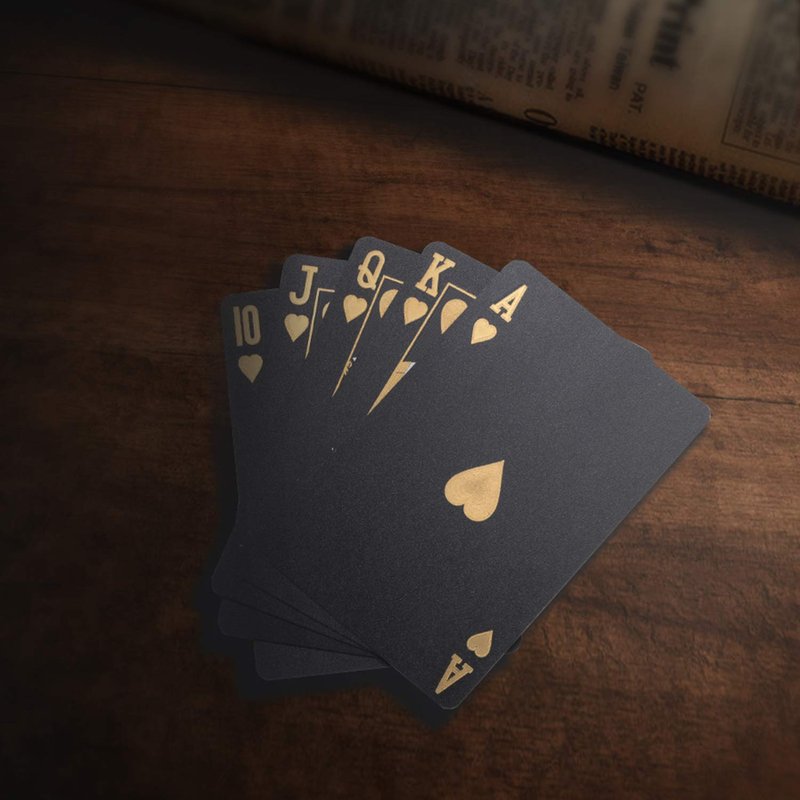 Cool Black Gold Foil Deck of Cards Will Give You More Surprise and Joys! - One of the most popular items for party. - Full of art value, it's worth for you to own. - Suitable for all card games, you can spend leisure time with friends and family, and also suitable for carrying while traveling. Specifications: Color: Cool Black Materials: Waterproof PVC Size: 2.2 x 3.4 inch / 5.7 x 8.7cm Kindly Reminder: It would be better if you use them in bright environment, believe they will give you a great surprise. This is the design features of our pokers, in order to prevent others from looking your cards, thus eliminating cheating. Hope you will like them!