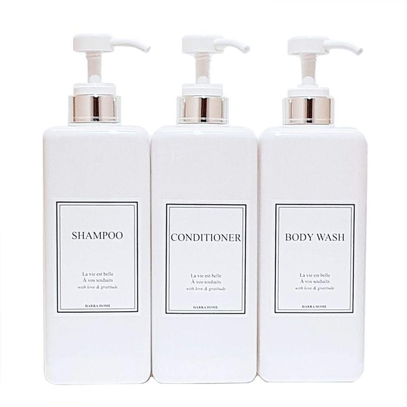 HARRA HOME Modern Gold Design Pump Bottle Set 27 oz Refillable Shampoo and Conditioner Dispenser Empty Shower Plastic Bottles with Pump for Bathroom Lotion Body wash, Pack of 3 (White & Silver)