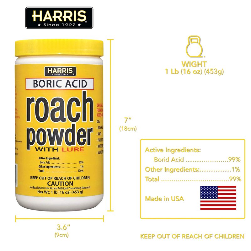 Harris Boric Acid Roach Killer Powder with Lure, 16oz