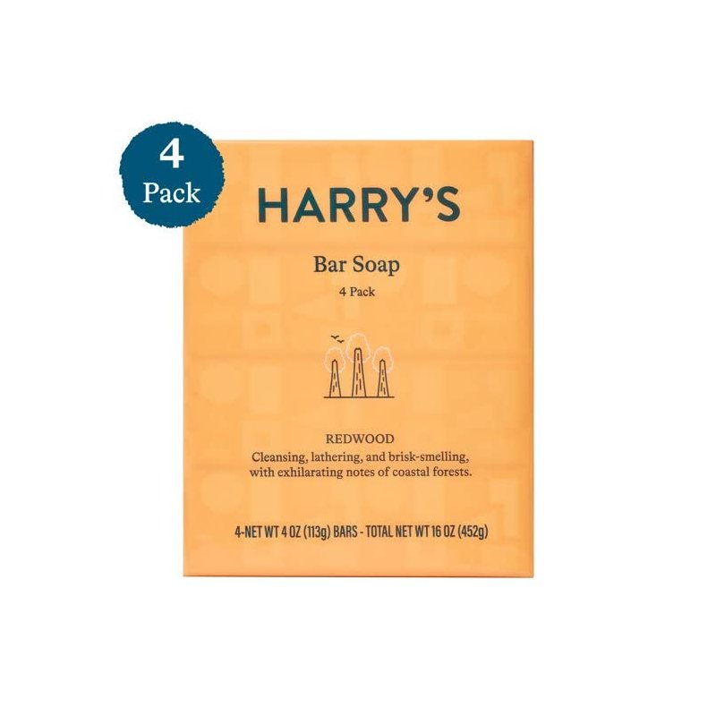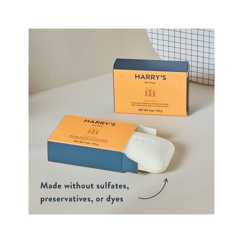 Harry's Men's Bar Soap, Redwood Scent Body Bar Soap for Men, 4 Bars, Net Wt 4 oz Each