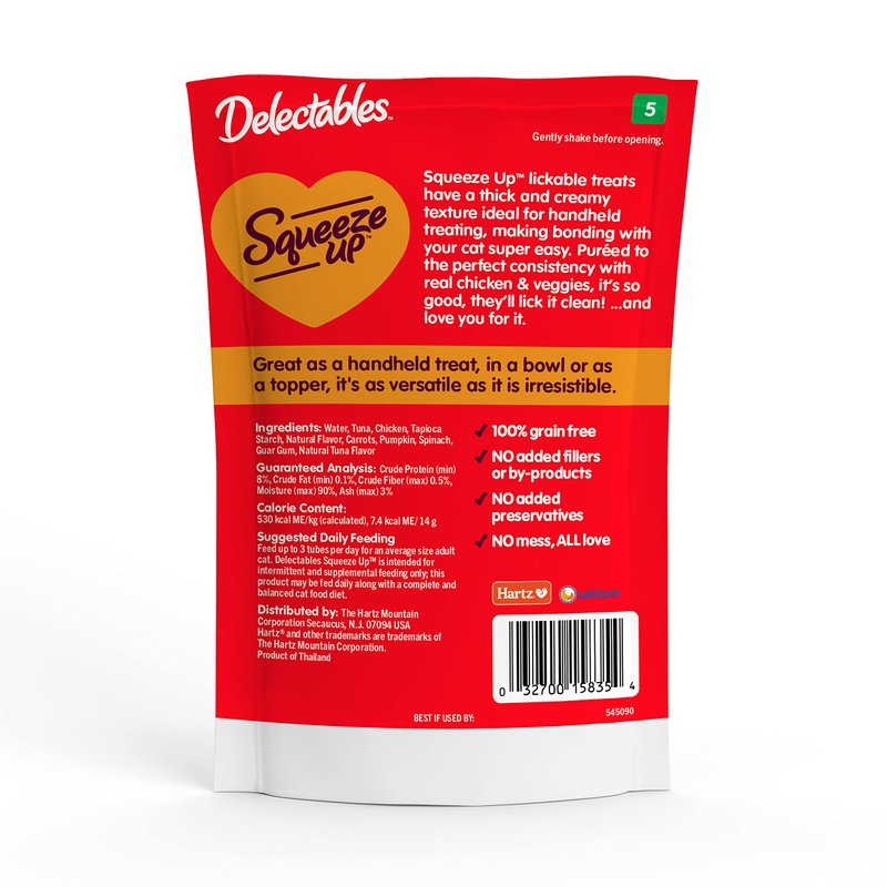 Hartz Delectables Squeeze Up Interactive Lickable Wet Cat Treats for Adult & Senior Cats, Chicken & Veggies, 4 Count (Pack of 8)
