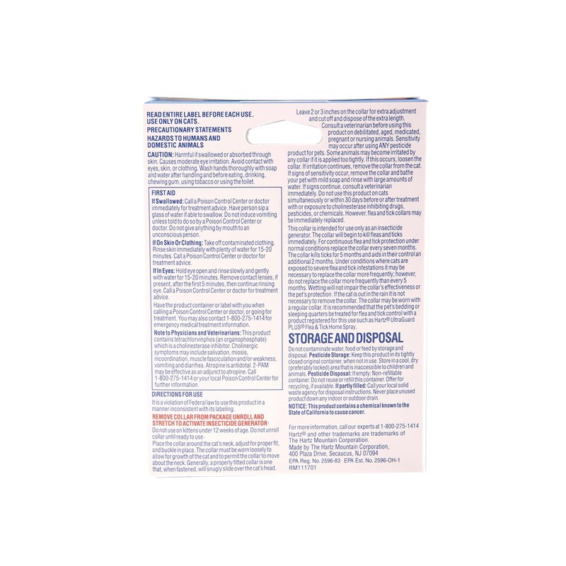 - Kills and repels fleas and ticks for 7 months. Can be worn simultaneously with your cat's regular collar