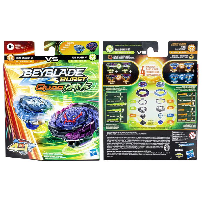 Hasbro Beyblade Burst QuadDrive Roar Balkesh B7 and Stone Balderov B7 Spinning Top Dual Pack - 2 Battling Game Top Toy for Kids Ages 8 and Up