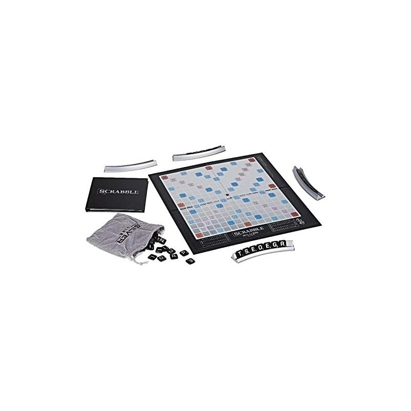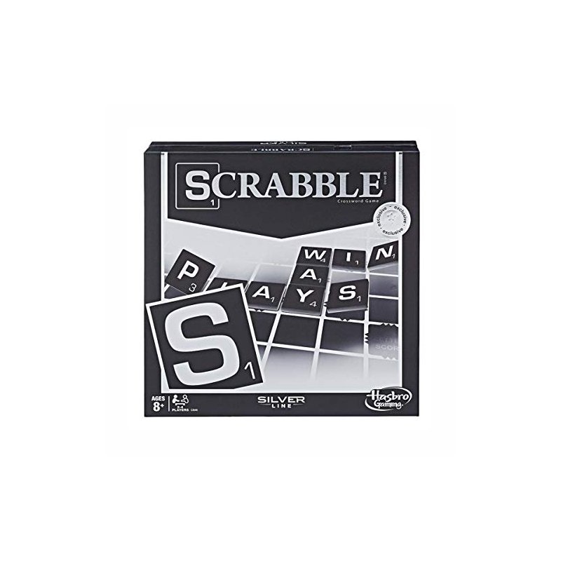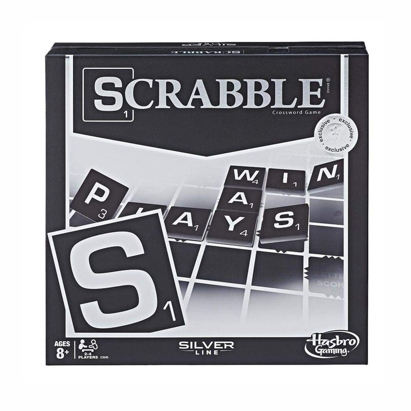 Take the classic and bring it up another level with Scrabble Silver Line! Put letters together, build words, add up points and win! In this edition of the Scrabble game, players use their letters to score points and challenge family and friends. This Silver Line edition of the Scrabble game features a sleek black and pewter-colored scheme. It includes premium packaging, a foil-accented game board, black and pewter-colored letter tiles, a pewter-colored drawstring bag for storing tiles, and a score pad and booklet.