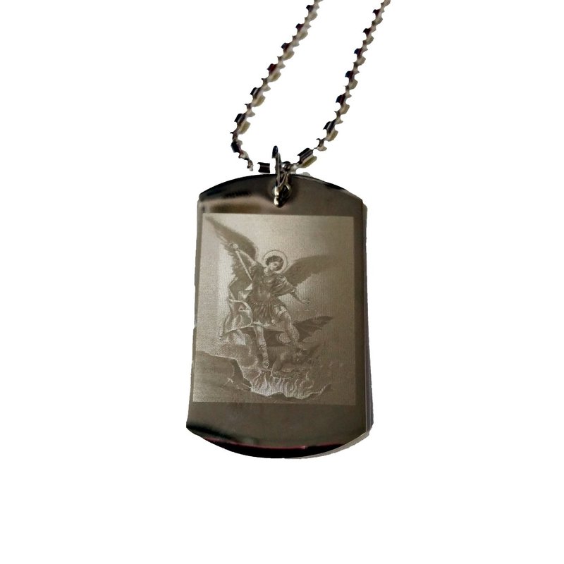 Hat Shark Christian Jesus Christ Angel Prayer to St Michael The Archangel Double Sided Logo - Military Dog Tag, Luggage Tag Metal Chain Necklace