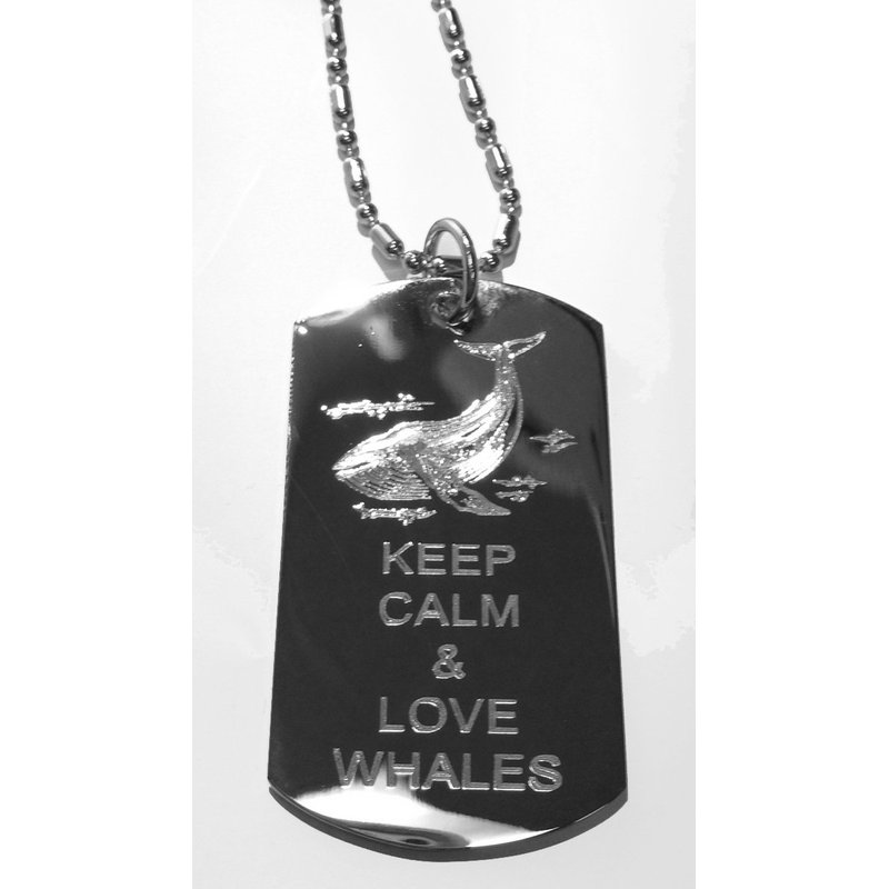 Hat Shark Keep Calm and Love Ocean Whales - Military Dog Tag, Luggage Tag Metal Chain Necklace